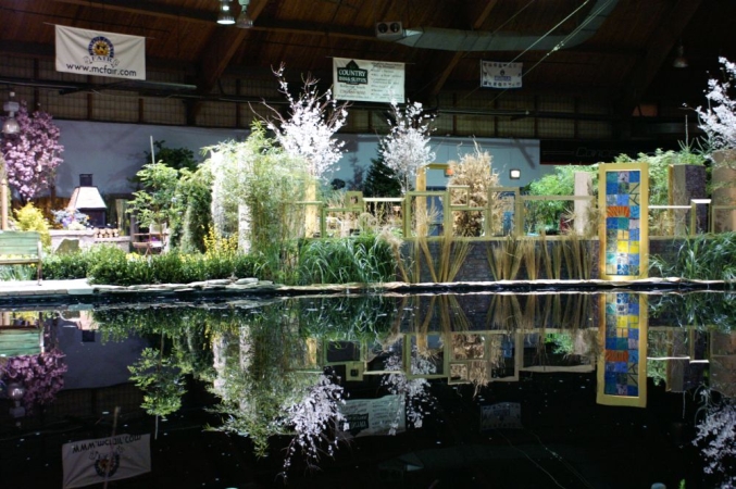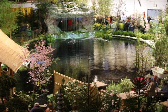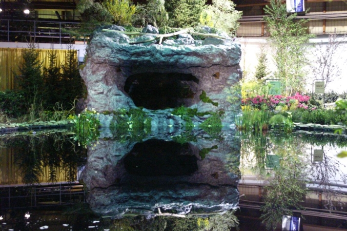 A babbling book, a reflecting pool, koi swimming in a pond. Water features add a lot to the modern landscape, and GardenScape exhibits have demonstrated creative uses of water over the years. Below are some examples, starting with our lake and grotto constructed indoors for the 2006 show, "Reflections".